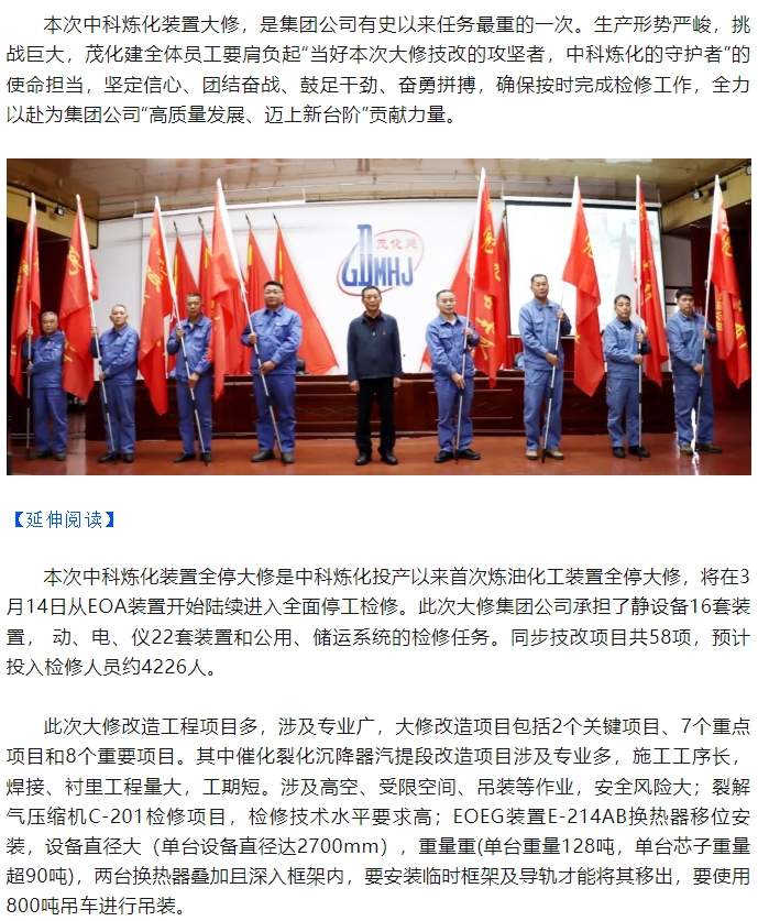 勠力同心擂響戰鼓 千軍萬馬出征大修——集團公司2024年中科煉化🙉裝置大修動