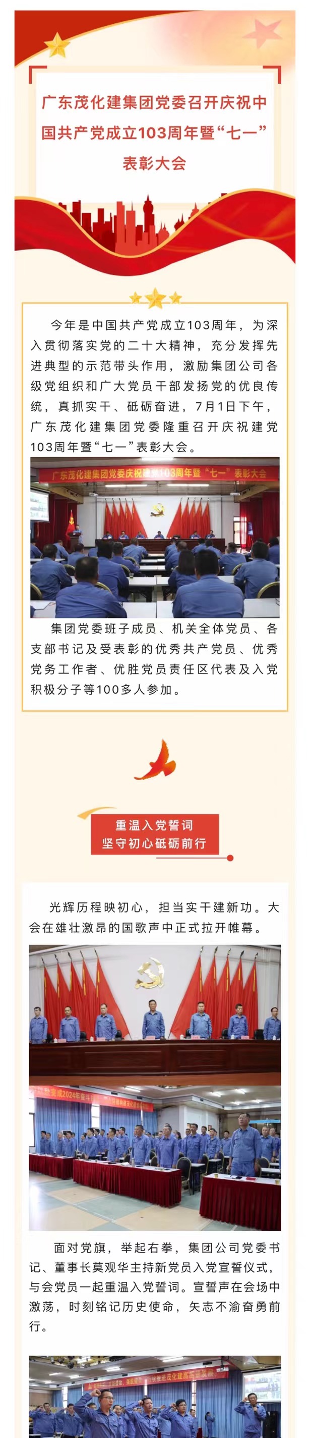 廣東茂化建集團黨委召開慶祝中國共産黨成立103周年暨😸“七🏃🏿‍♀️‍➡️一”表彰大會