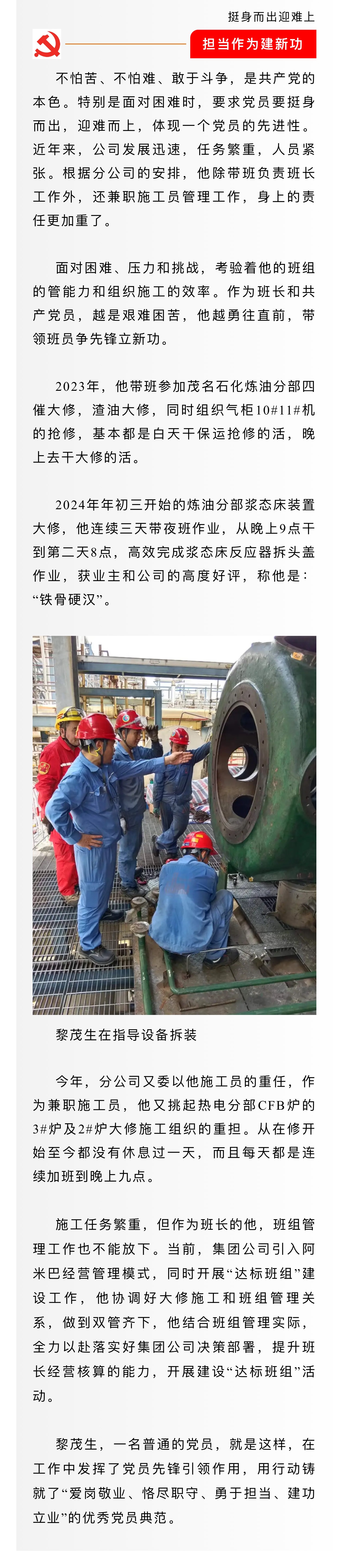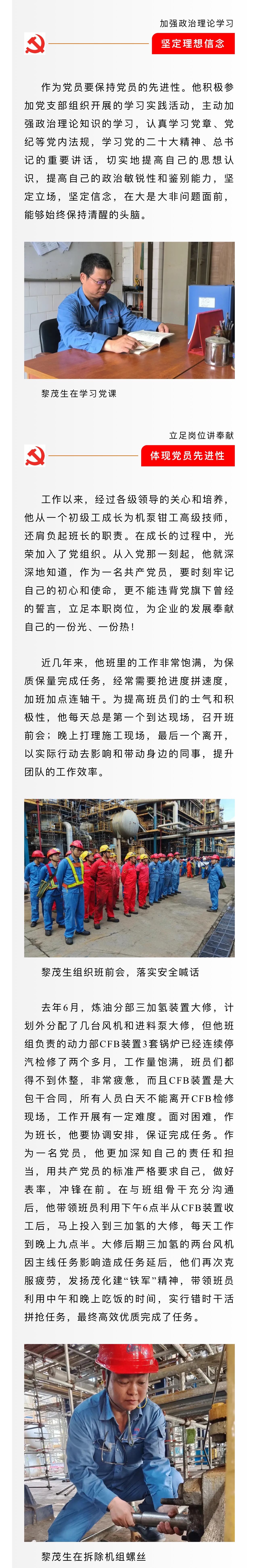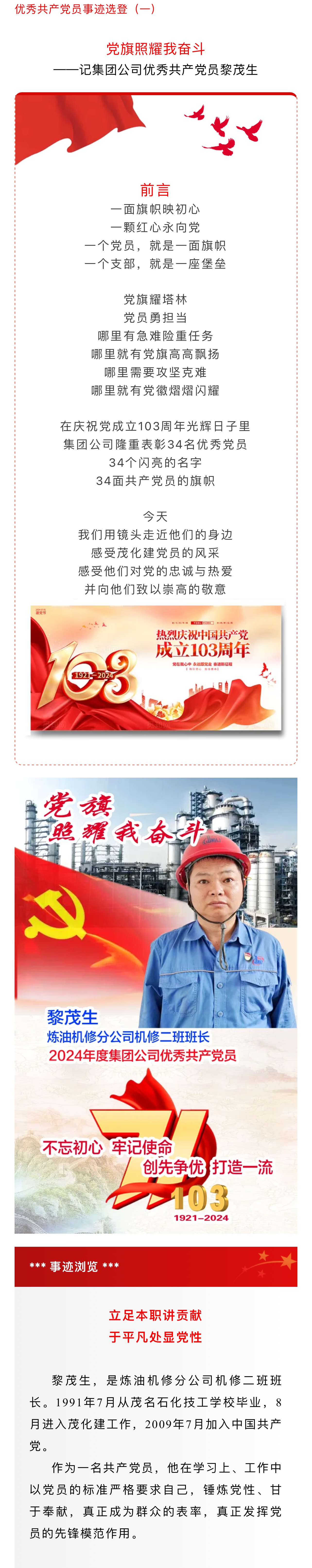 黨旗照耀我奮鬥——記集團公司優秀共産黨員黎茂生