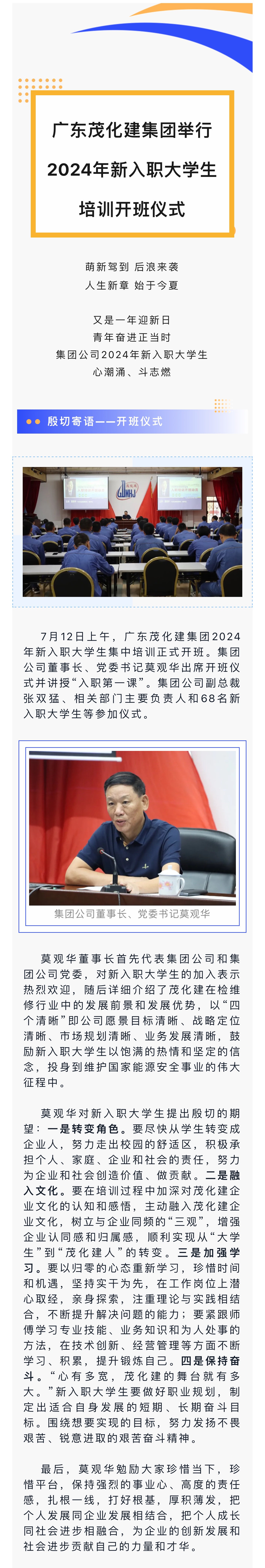廣東茂化建集團舉行2024年新入職大學生培訓開班儀…式