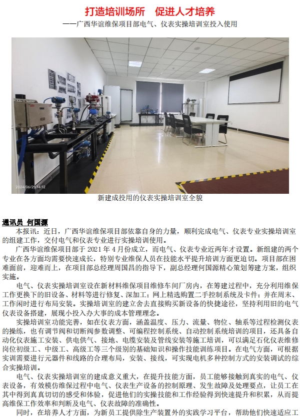 廣西華誼維保項目部電氣、儀表實操培訓室投入使😮‍💨用~