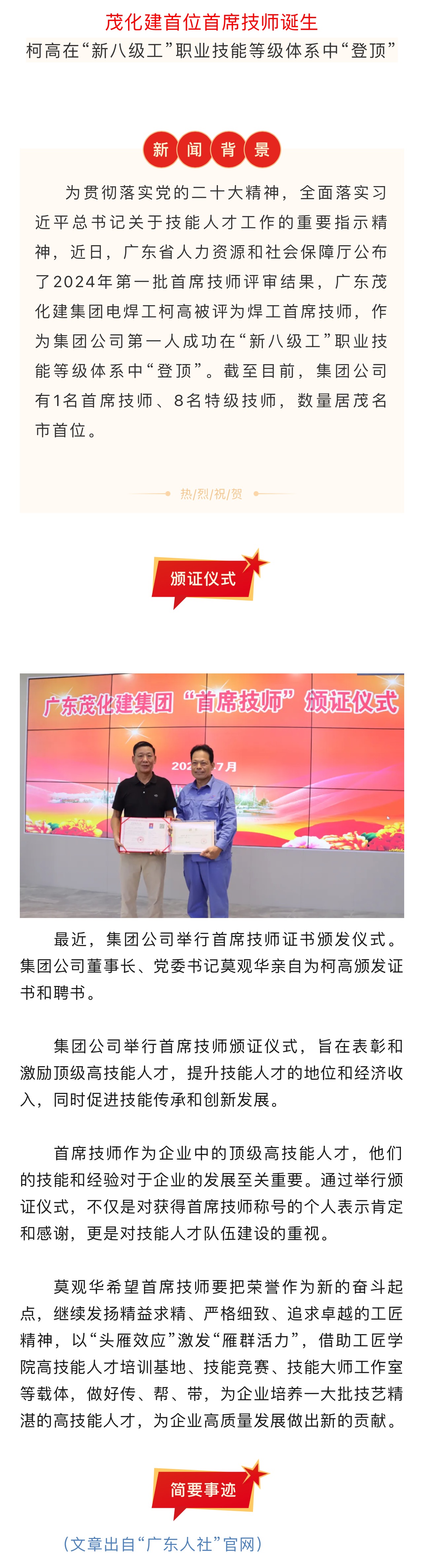 ​喜報|茂化建首位首席技師誕生!