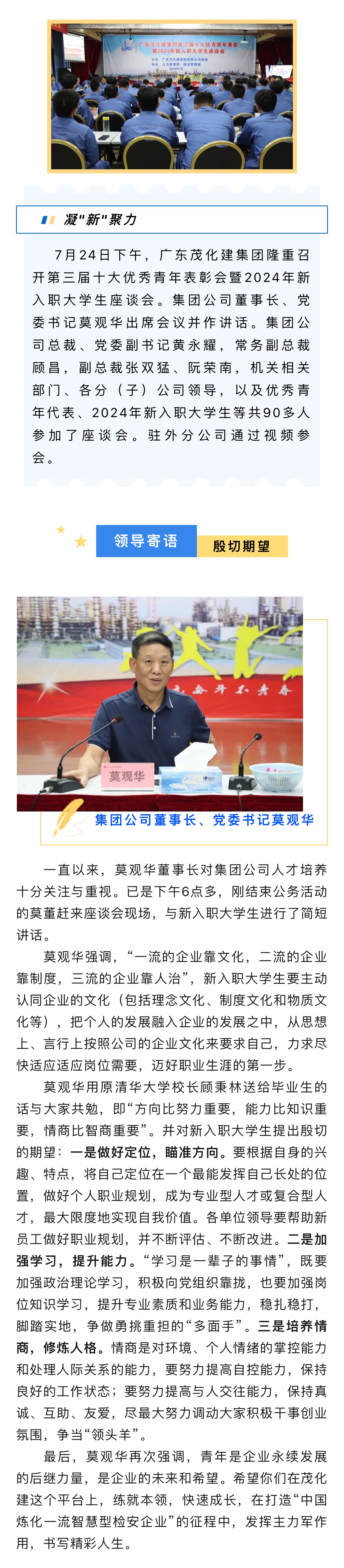 集團公司召開第三屆十大優秀青年表彰會暨2024年新👨‍🦰入職大學生座談會